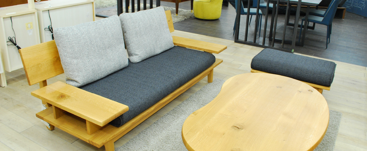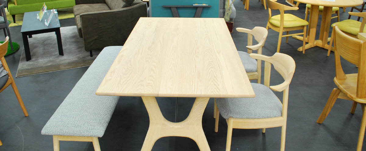当社オリジナルブランド”ARBOL”のリビング、ダイニングとベッドを中心に展示しています。